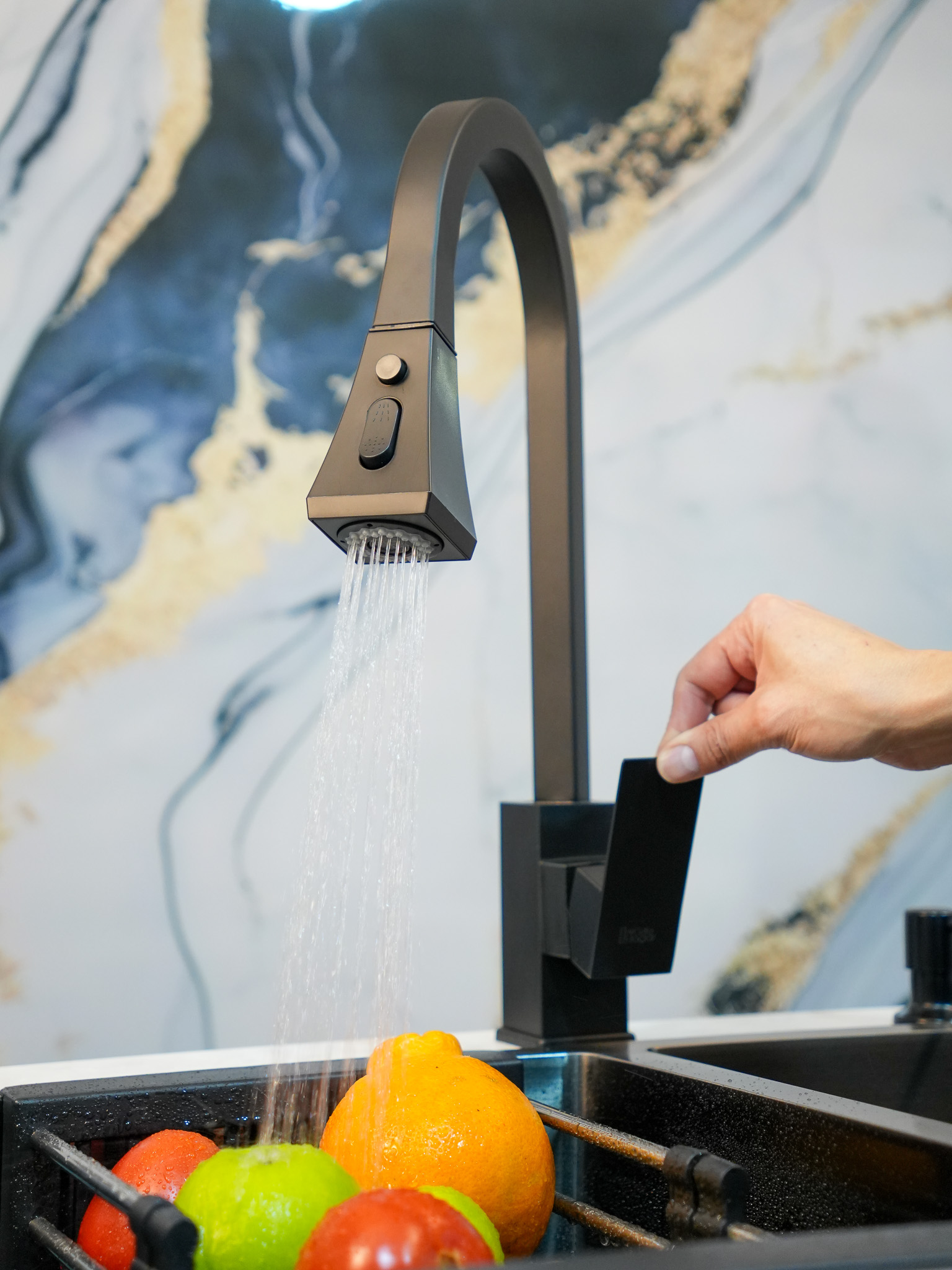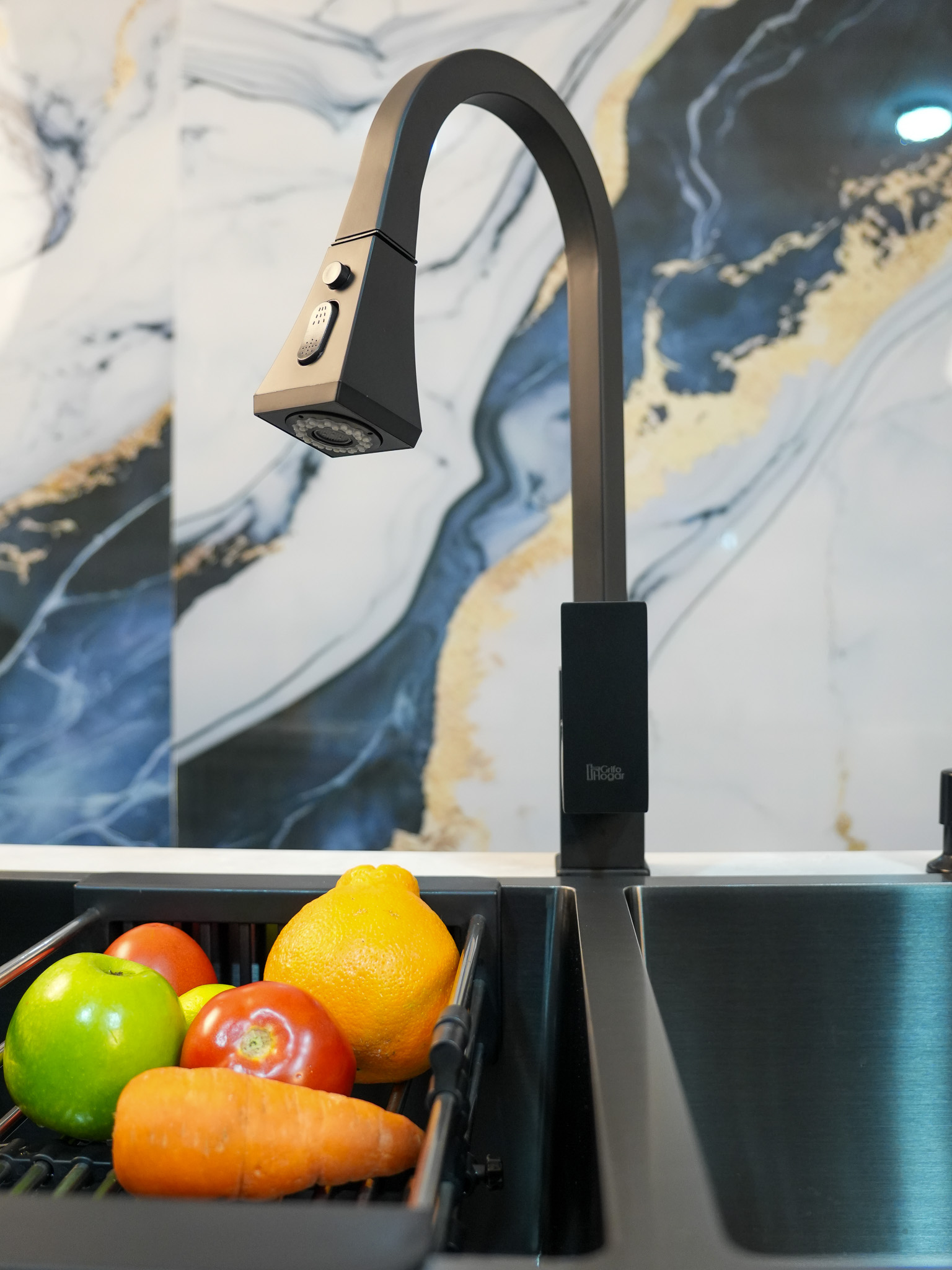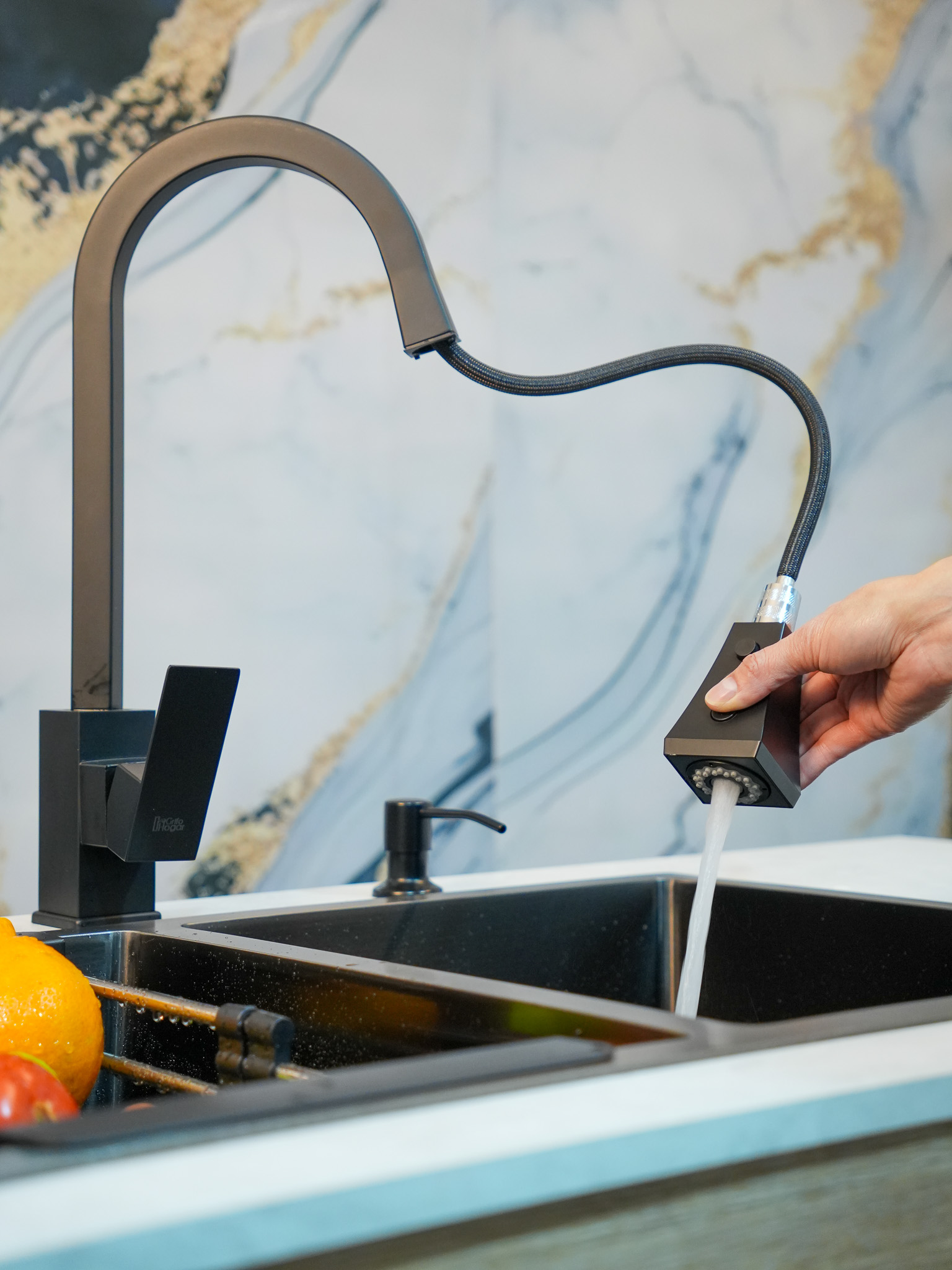 Grifo monocontrol agua fría y caliente, extraíble de lujo.