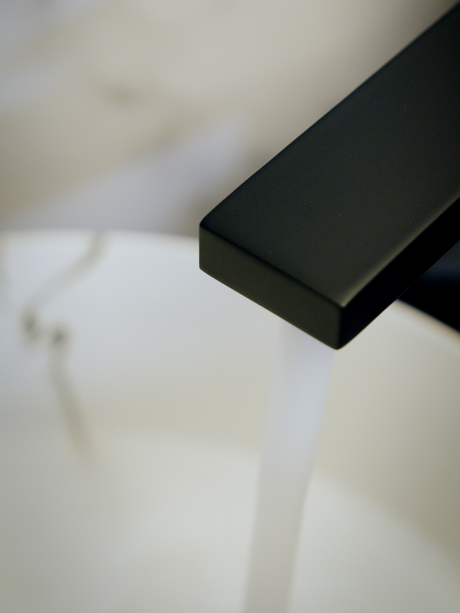 Fabricado en acero inoxidable 304, diseño moderno, mezclador agua fría y caliente, acabado negro mate.