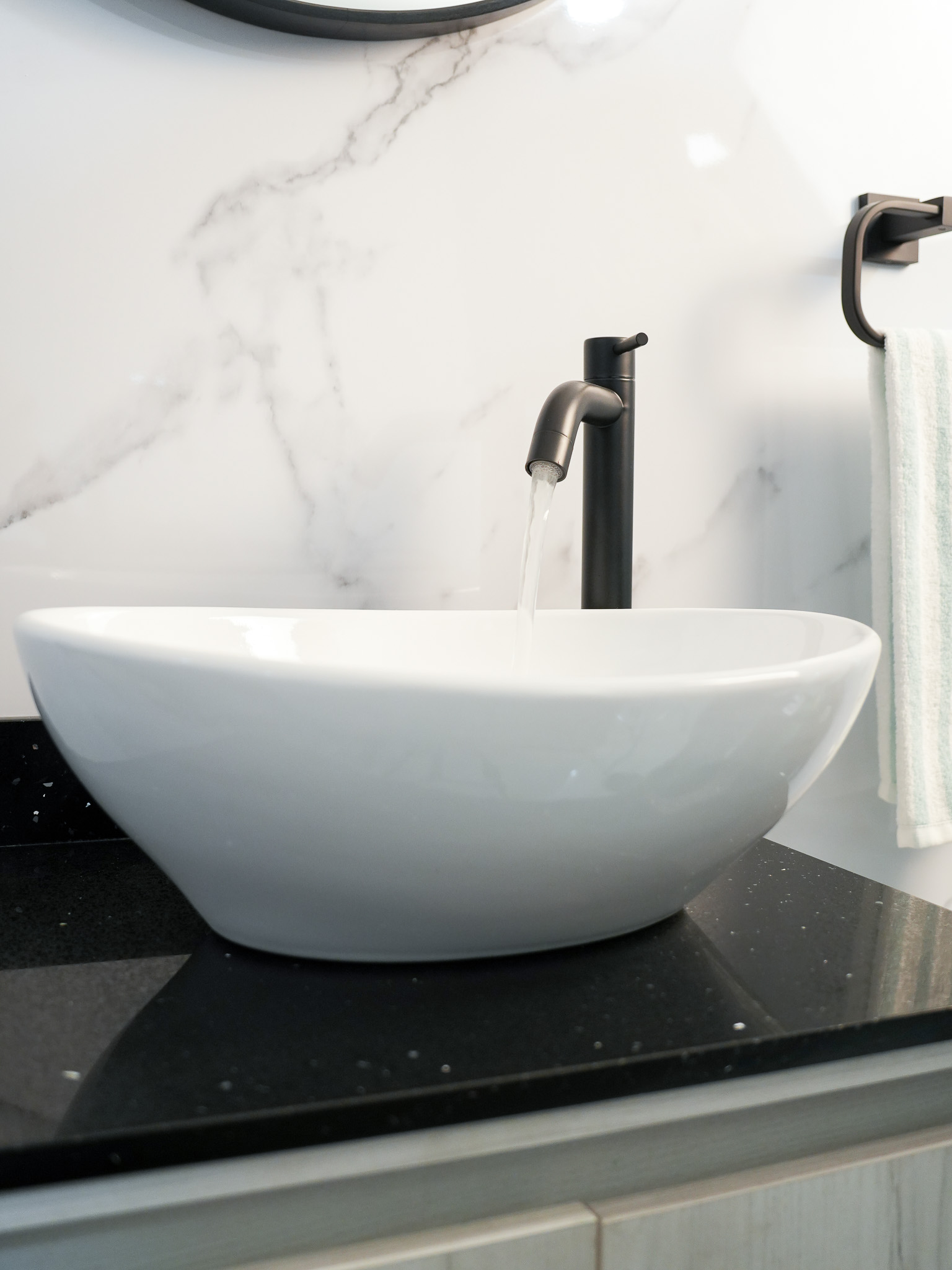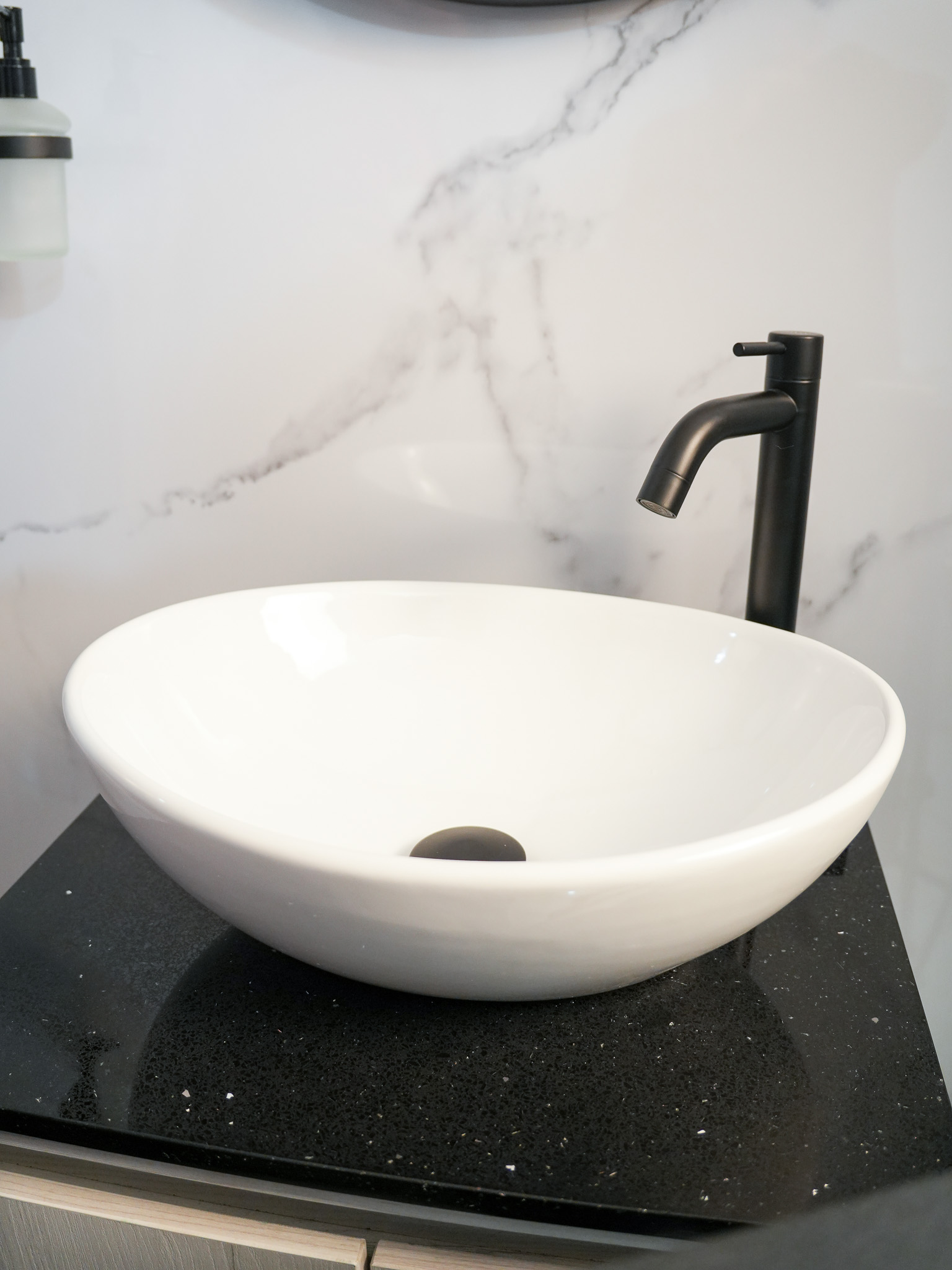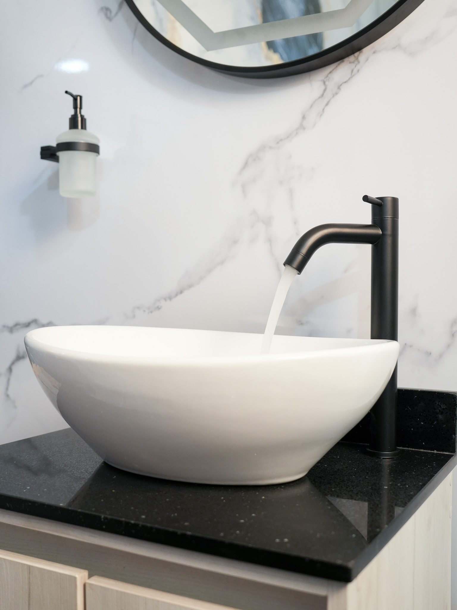 Fabricado en acero inoxidable 304, diseño moderno, mezclador agua fría y caliente, acabado negro mate.