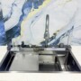 Lavaplatos Moderno Grifo Hogar fabricado en acero inoxidable 304 cuatro teclas, color negro, nano tecnología para mayor durabilidad con dos cascadas para lavado de frutas y verduras, grifería extraíble, lava vasos, dispensador de jabón. botón pata desagüe, bandejas y tabla para picar, garantía de un año.